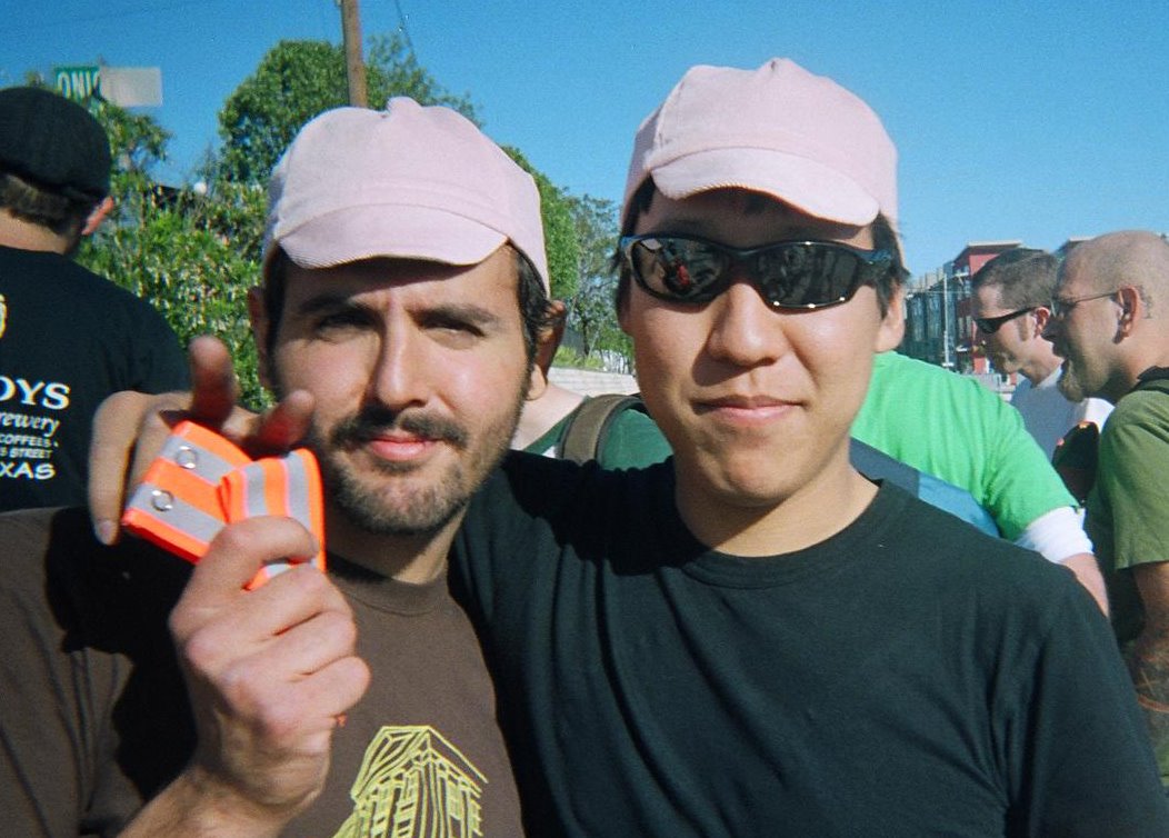 Tired of looking for one of those goofy little cycling caps that doesn't look like all the rest? Look no further, 'cause all you've gotta do is talk to these locals and they'll set you up for 20 bones. Still need more convincing? Just look at how cool these guys look in their snazzy new pink hats (won at the Drop Dead Alleycat)...